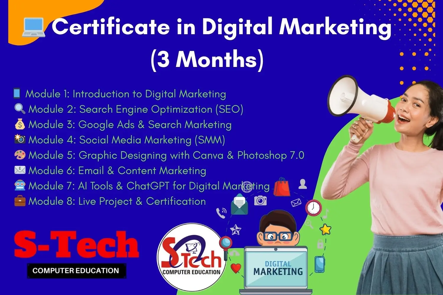 ๐ S-Tech Computer Education, Nawanshahr, established in 2009, is proudly recognized as the Best Computer Institute in Nawanshahr district. We are a Government Registered & ISO 9001:2015 Certified Institute ๐, professionally managed by S-Tech Computer Education Society (Regd. No. 1705) and registered under MSME (UDYAM-PB-21-0008558), Government of India. With 15+ years of excellence โญ, we offer high-quality, practical, and career-oriented computer training to students, job seekers, housewives, and professionals. Our institute is trusted across the entire Nawanshahr district for delivering real-life practical sessions and industry-level skill development ๐ป. S-Tech Computer Education is also an Official Partner Institute of Tally Education Bangalore ๐งพ, offering Professional Tally Prime Training on Original Licensed Software. This makes us the only professionally certified Tally training provider in Nawanshahr district, ensuring genuine, industry-standard accounting skills for students. We also specialize in Government Job Oriented Courses, including the 120 Hours Computer Course and EnglishโPunjabi Typing Training โจ๏ธ, which are essential for various government job recruitments. โญ Our Courses (Basic to Advanced) ๐ผ Basic Computer & Office Skills โข Basic Computer Course โข MS Office (Word, Excel, PowerPoint) โข Internet & Email ๐ โข Office Work Practical Training ๐๏ธ Government Job Focused โข 120 Hours Computer Skills Certificate โข English & Punjabi Typing Training โจ๏ธ ๐ Accounting & Finance (With Tally Education Partnership) โข Professional Tally Prime Training (Official Partner โ Tally Education Bangalore) โข Tally Prime with GST (Original Software Training) โข Busy Accounting โข Payroll & Finance Management ๐จ Graphic Designing โข Photoshop โข CorelDraw โข Illustrator โข Canva โข Social Media / Logo Designing ๐ผ๏ธ ๐ Web Designing & Development โข HTML, CSS, JavaScript โข WordPress โข UI/UX Basics โข Full Stack Fundamentals ๐จโ๐ป Programming โข C, C++, Python, Java โข JavaScript Programming โข SQL / MySQL ๐ค Artificial Intelligence & Modern Skills โข AI Tools for Beginners โข ChatGPT & Prompt Engineering โข Automation Tools โข No-Code Tools ๐ฃ Digital Marketing โข SEO โข Social Media Marketing ๐ฑ โข Google Ads โข Content Writing & Blogging โ๏ธ ๐ Diploma Courses โข DCA โข ADCA โข Diploma in Web Designing โข Diploma in Graphic Designing โข Diploma in Accounting & Finance